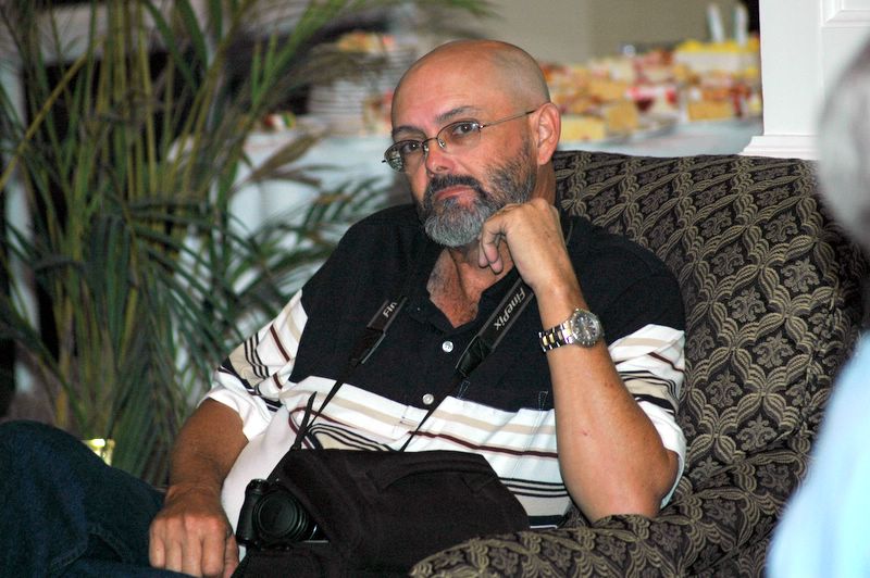 CMH 80th Birthday Party -- Jimmy spies a camera trained on him.